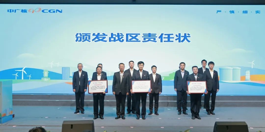 会议表彰了2024年度“模范员工”、价值贡献奖及五星部门,签订了“四位一体”考核责任书,先进代表做了交流分享。按照惠州核电“党委管总、战区主战、部门主建”的工作方针,专门组织开展奋战“三大战区”决胜“五大战役”动员环节,章国强向各战区负责人颁发了责任状。
