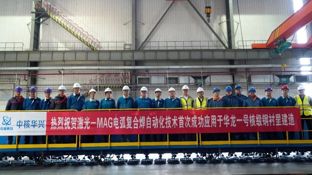 近日,随着安全壳钢衬里筒体第八层最后一张壁板从激光-MAG电弧复合焊工作站上自动输送下线,标志着中核华兴自主研发的核岛安全壳钢衬里激光-MAG电弧复合焊自动化工作站成功完成超过400米核级密封焊缝自动化生产,首次实现全球核电建安史上核级产品激光高效焊接零的突破。