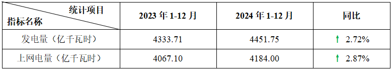 2)防城港核电厂4号机组2024年2月28日装料,本表格中统计发电量及上网电量包括调试期间电量。