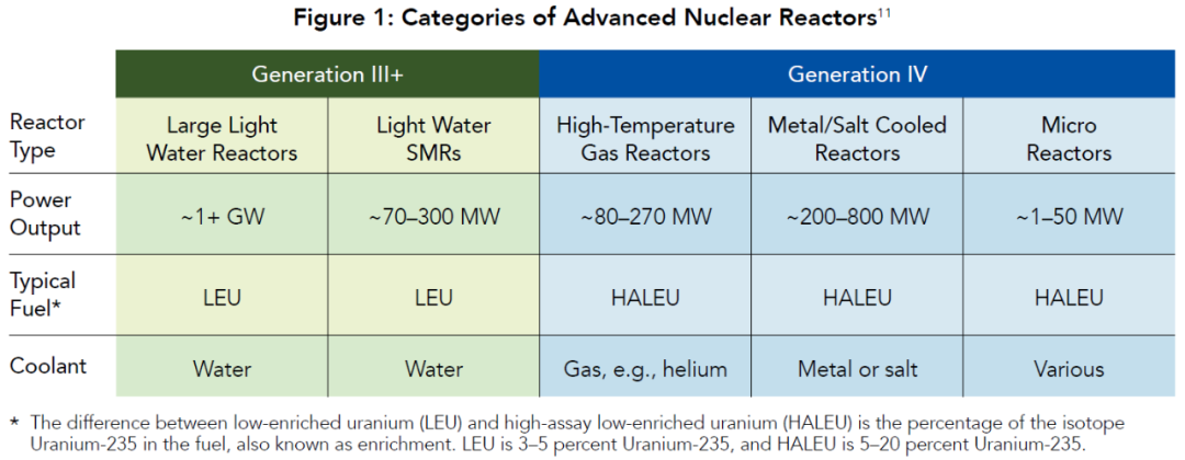 第四代技术继续在被动安全特性方面取得重大进展,同时还利用传统燃料源的替代品(例如高浓度低浓缩铀 (HALEU))和替代冷却剂方法(例如气体、金属、盐等)。