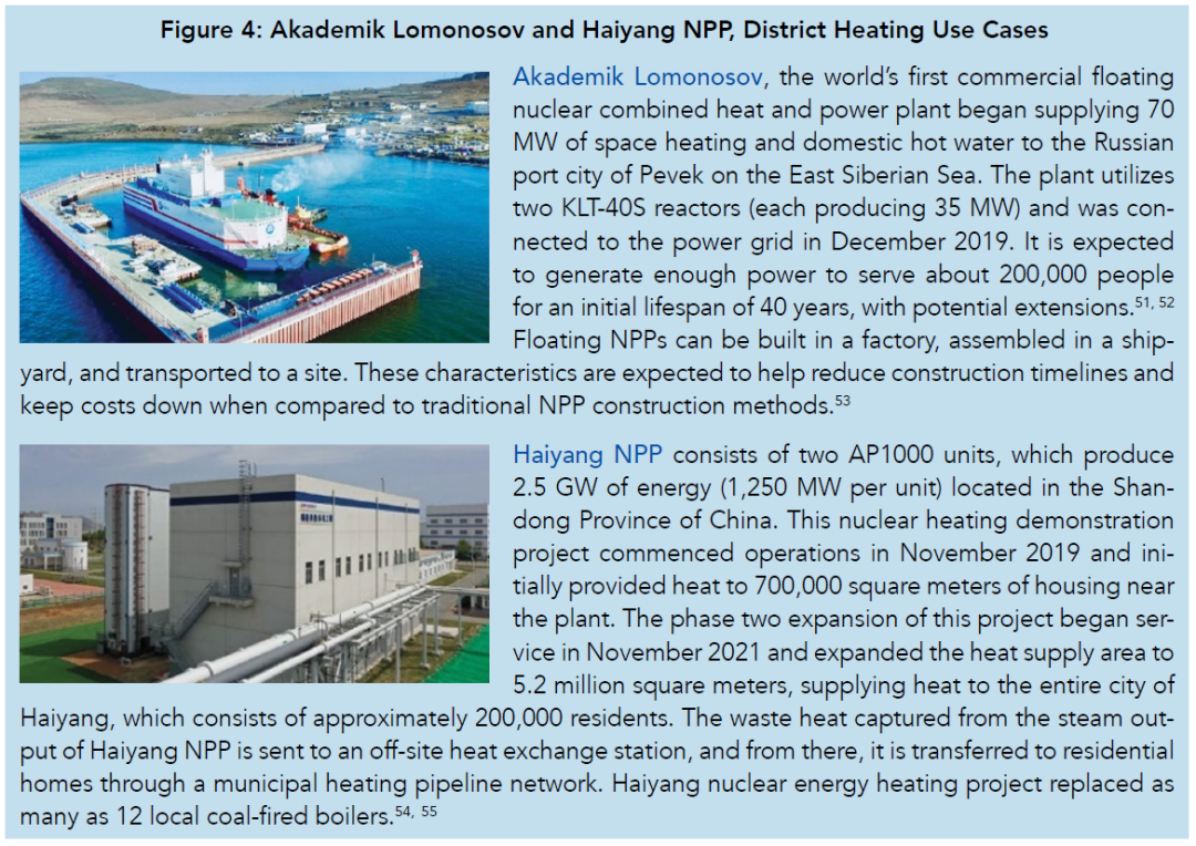 区域供热是一种热电联产副产品——在这种模式下,核电站仍然生产电力作为其主要产品,区域供热也利用废热生产。核能区域供热系统有可能取代单个供热锅炉,从而消除每个单元的排放。以热水或蒸汽形式存在的核能热能可以以具有竞争力的成本经济地输送到 100 英里以外的地方,同时将热量损失降至最低。