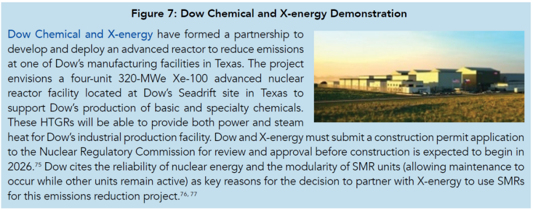 石油和天然气的生产、运输和加工约占全球温室气体 (GHG) 总排放量的 15%。EOR 和采矿作业非常适合部署微反应堆,因为这些作业地点偏远,并且可能出现极端气候,这使得其他替代形式的零排放能源难以实施。怀俄明州正在积极探索部署 BWXT35 高温气相反应堆 (HTGR),以支持该州的开采业,州长能源配套基金计划将提供 1000 万美元的资金。