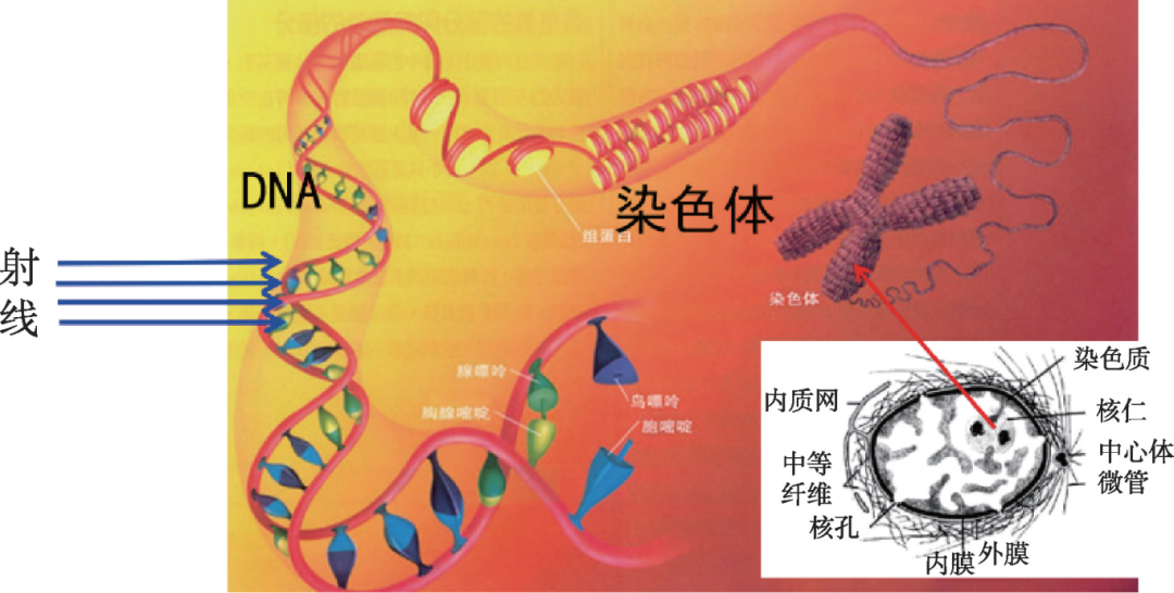 放射治疗就是使用高能X射线,γ射线,中子(这些都是非带电的粒子),以及带电离子,包括质子和重离子对肿瘤进行治疗。放射治疗的基本原理就是利用上述的射线照射肿瘤,产生许多次级电子和一些自由基(外围拥有不成对电子的原子、分子和基团),这些次级电子和自由基再轰击肿瘤细胞的DNA,使其发生单链和双链断裂,如果这些断裂,特别是双链断裂不能修复,就会导致癌细胞的凋亡或死亡(图5)。目前,在放射治疗中,重离子治疗已成为最先进的治疗方法。下面就着重介绍一下,为什么重离子能够成为最先进的治疗方法。