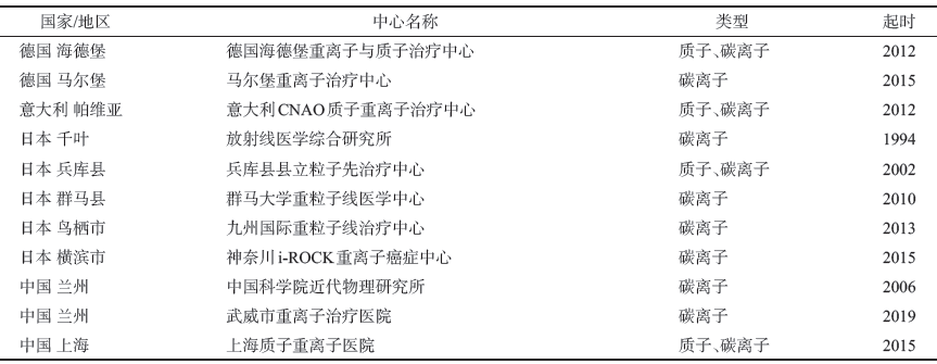 总之,重离子的这些物理特性和生物学特性,使得利用重离子治疗肿瘤比利用X射线有明显的优越性:治疗精确度高,治疗时间短,治疗效果好,副作用小,适用范围广。因此,在世界范围内都受到广泛的重视。表1 中列出了世界上现有开展重离子治疗的医疗机构。