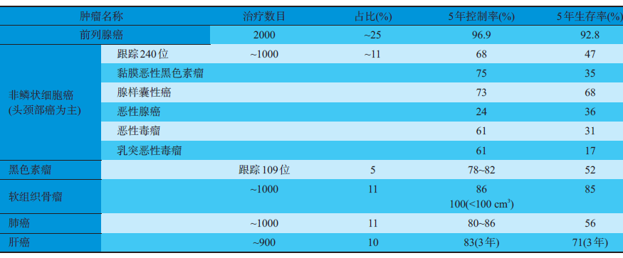 表2 日本重离子治疗效果统计