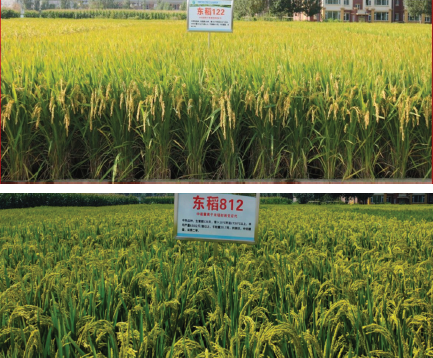 2021 年,国内首个重离子束诱变选育的北方耐盐碱粳稻新品种“东稻122”喜获丰收,平均亩产632千克,比当地主推品种增产10.6%,高产地块产量达到721 千克/亩,累计推广面积20 多万亩,入选吉林省农业主导品种。随后,又有四个水稻新品种“东稻275”“东稻211”“东稻812”和“东稻862”,获得了农作物品种审定证书(图26)。