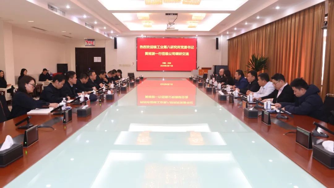 2月11日,核工业第八研究所(以下简称中核八所)党委书记黄裕澍,所长、党委副书记孙涛一行到访公司。公司党委书记、董事长殷如斌,总经理、党委副书记李磊热情接待。