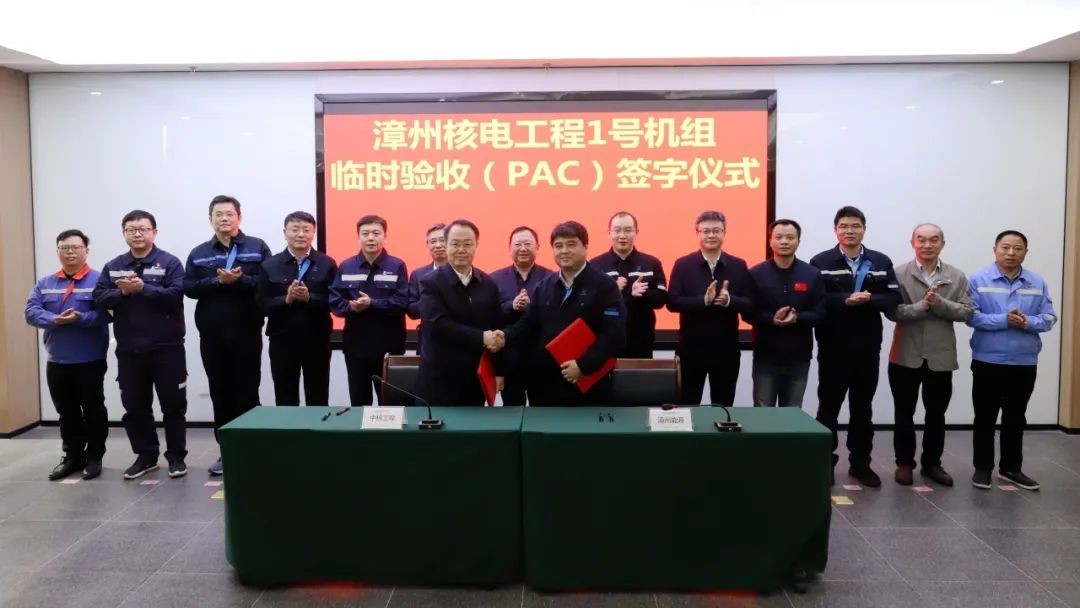 2025年2月14日,漳州核电工程举行1号机组临时验收(PAC)签字仪式。中国核能电力股份有限公司、中核国电漳州能源有限公司、中国核电工程有限公司以及中核工程咨询有限公司、中国核工业二四建设有限公司、中国核工业二三建设有限公司、中国核工业第五建设有限公司等单位的领导及相关代表参加活动见证了这一重要时刻。