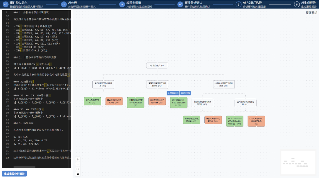 平台通过AGENT智能体和DeepSeek实现了事件关键信息的自动分析提取,提供直观易用的图形界面,支持无限制的门和事件数量,能够快速构建庞大且复杂的故障树模型,追溯质量问题的多级根因,自动生成最小割集智能分析,并输出模型。