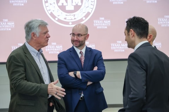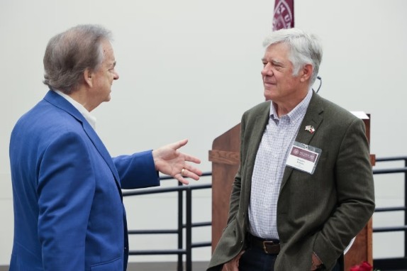 道格·罗宾逊与德克萨斯农工大学校长约翰·夏普交谈