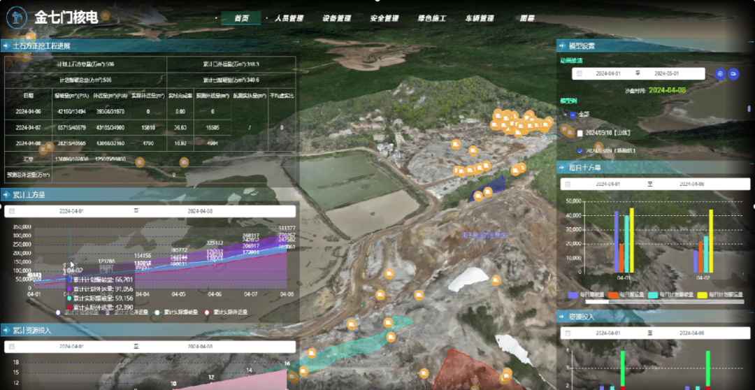 集成BIM+倾斜摄影+IOT等新一代数字化技术,形成国内核电项目首个集三维实时可视化定位、数据实时自动计算、风险项自动分析预警等功能于一体的土石方工程施工数字化精益管理系统,通过“数字集成”为土石方施工管理注入新动力,提前40天完成正挖节点目标,创造核电土石方正挖“第一速度”。
