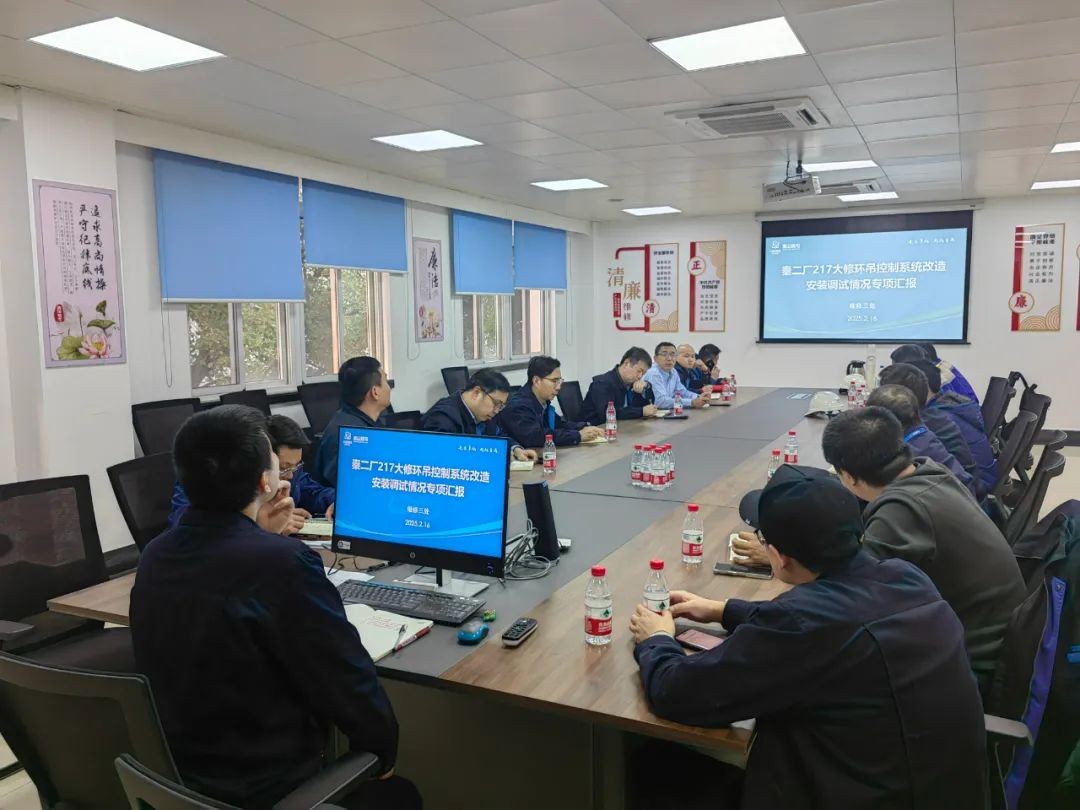 2025年1月29日,农历大年初一,环吊控制系统改造正式进入实施阶段。当天上午项目组成员按既定方案逐一核实确认需更换的设备及电缆;2月4日,平台防护材料顺利吊运至29米施工平台;2月5日,施工平台开始布置;2月6日,吊装平台开始搭设;2月7日,设备拆除及安装工作开始……“140T载荷试验执行成功!”随着调试方案最后一个步序顺利完成,施工阶段的计时终于按下了停止键,环吊控制系统改造施工及调试任务顺利完成,标志着环吊改造项目获得了圆满成功。