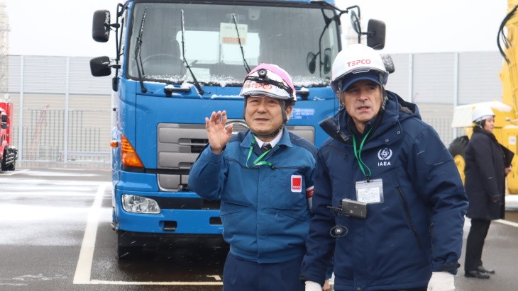 格罗西在柏崎刈羽检查应急车辆(图片来源:东京电力)