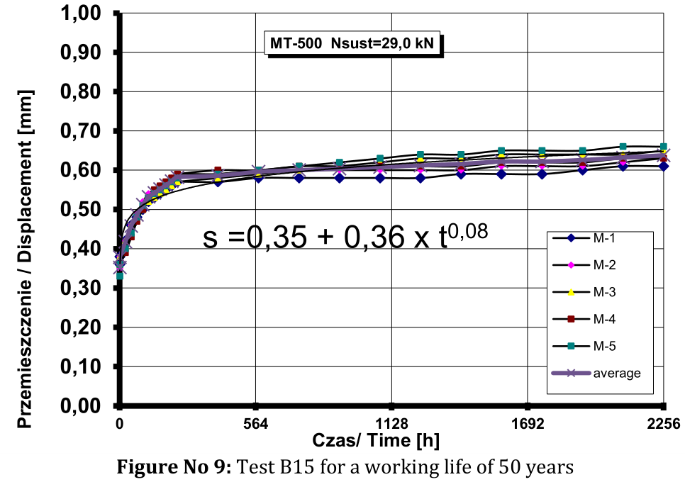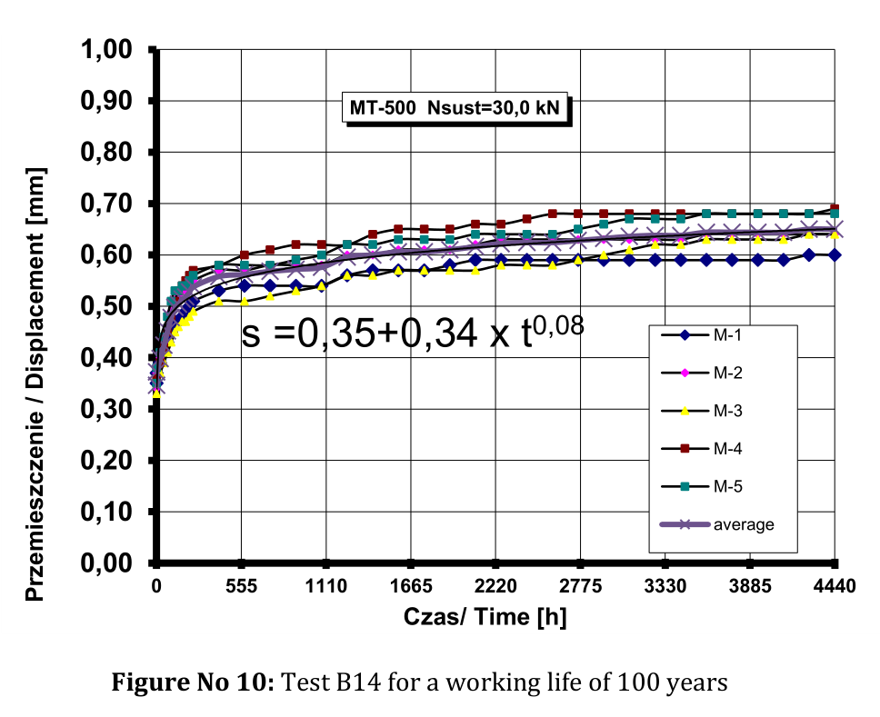 ③、欧洲100年耐久性评估(位移变化趋势),由欧洲ETA机构依据EAD 330499-01-0601标准出具。Displacement for a working life of 100 years su,adh=0.84[mm] F6 su,adh=1,20[mm]