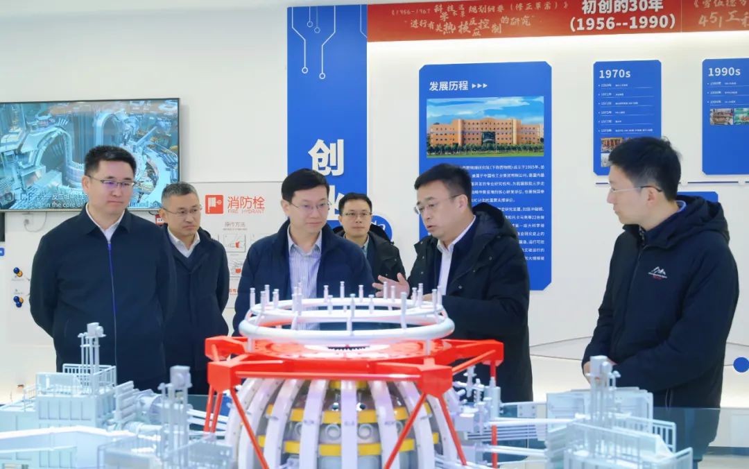 调研期间,陈军利一行实地考察了西物院聚变技术研发基地、聚变中间技术产业园,并深入新一代人造太阳“中国环流三号”装置现场,详细了解西物院相关业务及聚变科研进展。