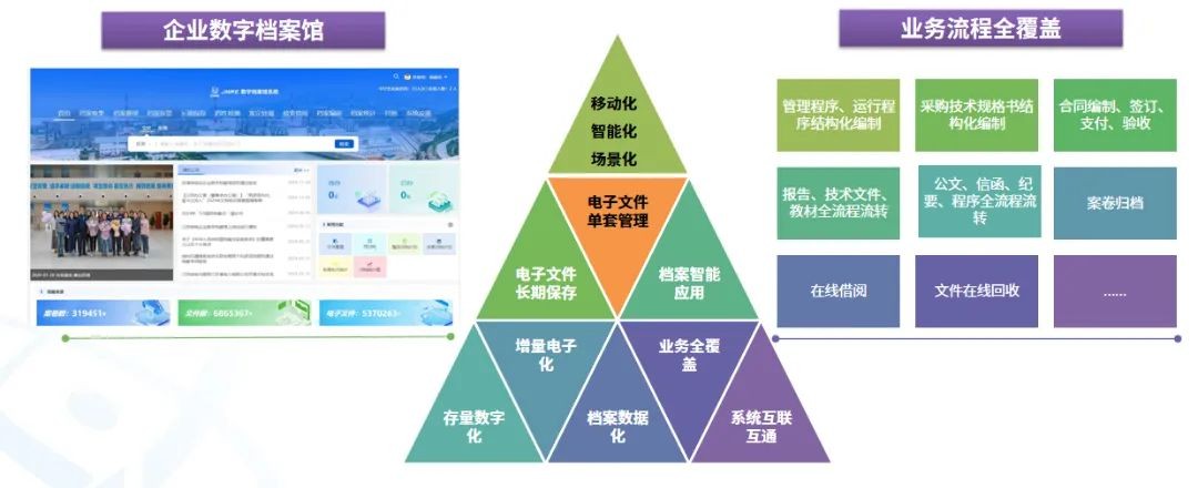 文档信息系统功能健全。企业内容管理系统(ECM)是江苏核电实现文档管理的系统平台,可满足多项目群堆精细化管理要求,统一了文件分类和元数据标准,与公司ERP和主要业务系统实现了数据资源整合和互联互通。江苏核电于2024年建设投用企业数字档案馆系统,通过数字技术与档案业务深度融合,实现电子文件从生成、办理到归档的全过程一体化管理,解决了业务系统原生电子文件自动归档、电子档案长期安全保管、档案智能编研等多项技术难点,提升了档案管理科学化、信息化、规范化,推动数字化转型,增强了对公司科研生产、经营管理的支撑能力。