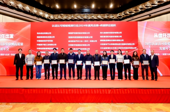 近日,认证认可检验检测行业公信力建设推进会暨2025认证认可检验检测高质量发展年会在北京举办,会议发布了2024年认证认可检验检测行业年度风云榜,中国原子能工业有限公司凭借在质量管理体系、技术标准创新研发等领域的显著示范效应,荣获“卓越获证组织”称号。