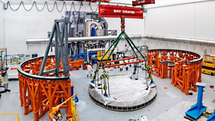 CFS 现已安装低温恒温器基座,该基座将支撑重达 1000 吨的 SPARC。该基座直径为 24 英尺(超过 7 米),重达 75 吨,还能吸收聚变过程中产生的部分中子,并容纳氦冷却剂、磁体电源和内部传感器通信链路的导管。