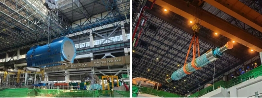 秦二厂2号机组此次功率提升改造,在不增加核功率的前提下,通过全面更换发电机定转子部件、对汽轮机高低压缸及转子等通流部件进行技术升级与更新、同步对励磁、主变压器、辅机等进行增容适应性技术改造,实现发电功率的提升。改造期间创新采用开顶法整体更换发电机定子,大幅优化关键路径工序,属国内首次。