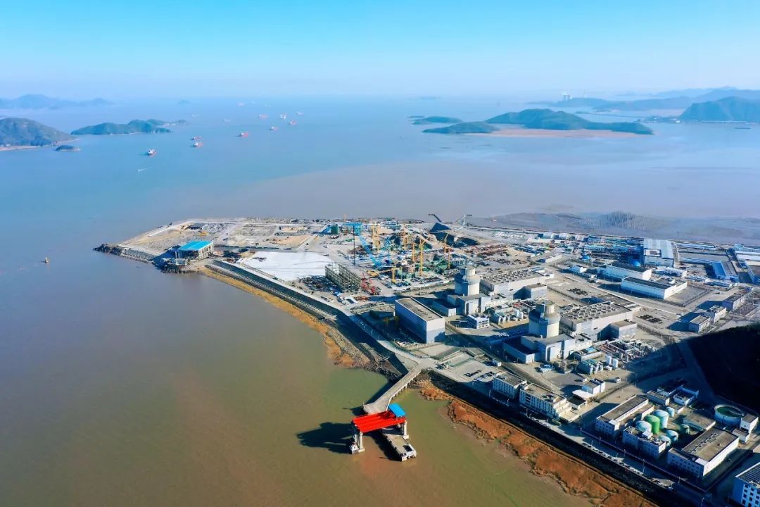 故事的起点在猫头山半岛。历经了“四通一平”、水厂建设、隧道施工等前置工程,三门核电终于具备开工条件。2009年4月19日,一期工程开工仪式在公司现场隆重举行,这个优质核电厂址正式踏上了它的建设之路。三门核电1、2号机组创新使用了模块化施工技术——将原来在工程建设现场完成的结构施工转到工厂进行预制,再运到核电工程现场拼装完成后采用吊装就位,这样既增加了工程建造的作业面、缩短了核电站建设工期,又提高了核电站的工程质量。
