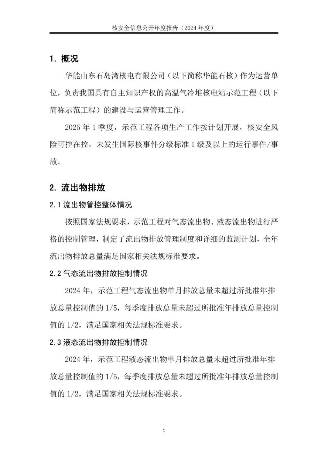 华能山东石岛湾核电有限公司核安全信息公开年度报告(2024年度)