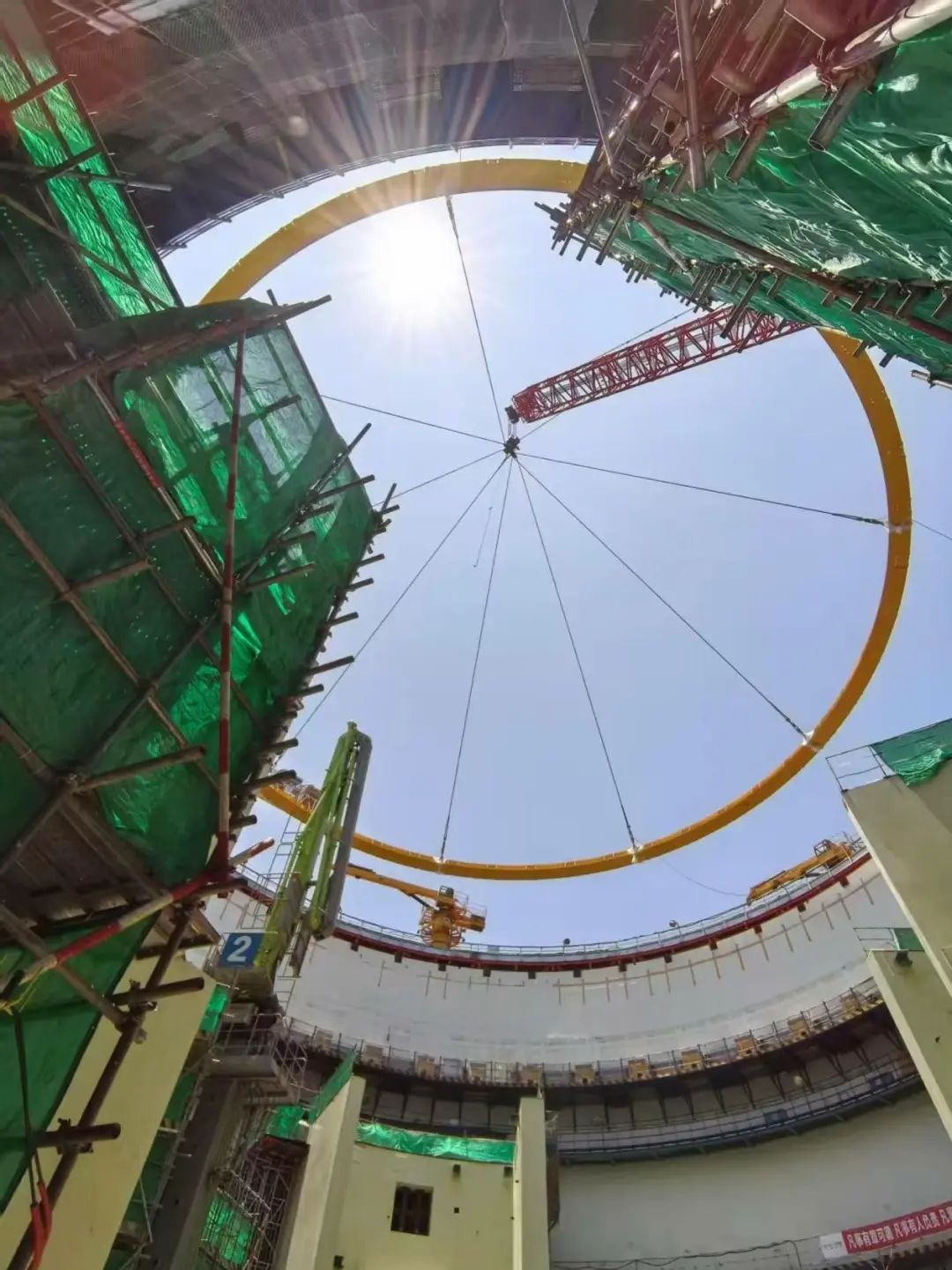 6月7日15时16分,经过起吊、悬停、提升、回转、下落及精准调整等一系列高标准作业流程,陆丰核电6号核岛BRX反应堆厂房环轨梁吊装完成精准就位。这一重要节点的顺利完成,为6号机组穹顶吊装奠定了坚实的基础,标志着陆丰核电6号核岛建设取得了又一阶段性成果。