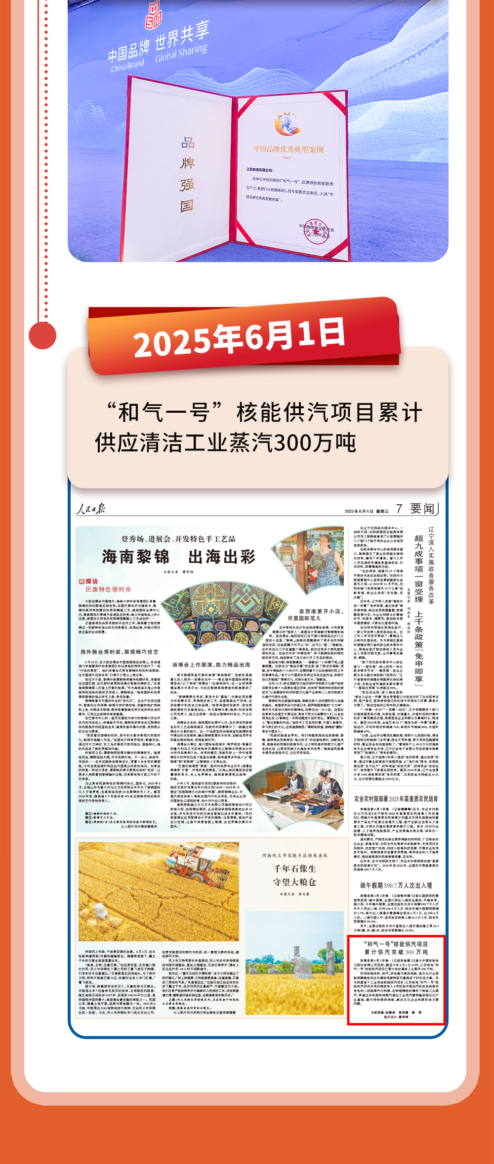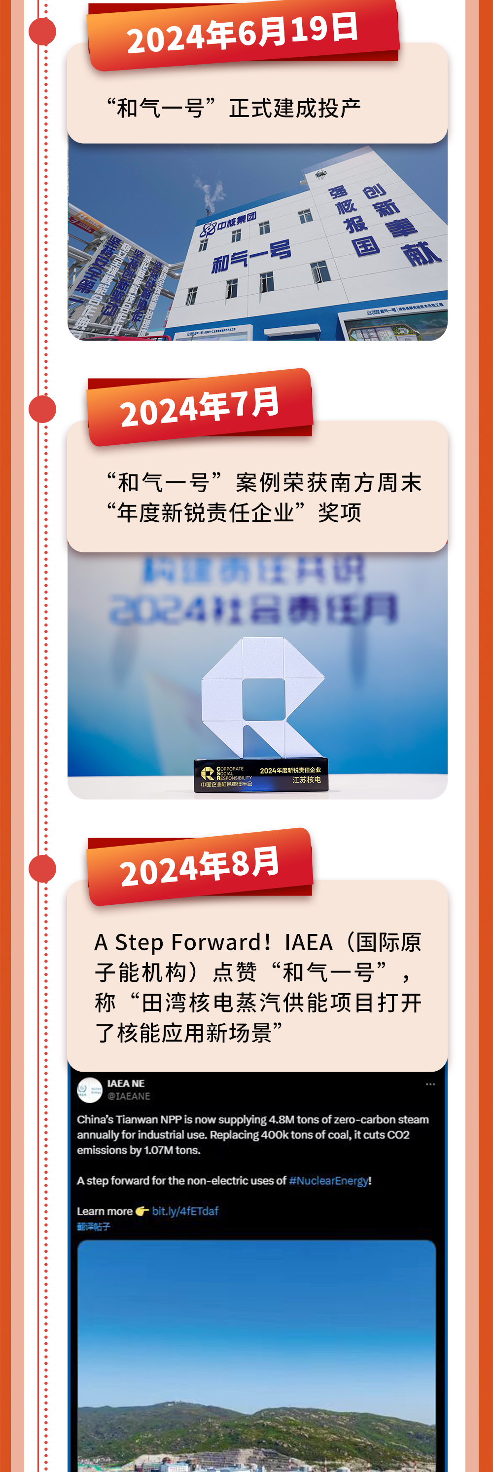 “和气一号”的成功运行意味着我国核能综合利用在走过单一发电、居民供暖阶段后,进入到工业供汽领域。一年来,“和气一号”安全稳定运行,通过不断进行经验积累与技术突破,为后续其他核电项目的核能工业供汽之路提供了示范样板。