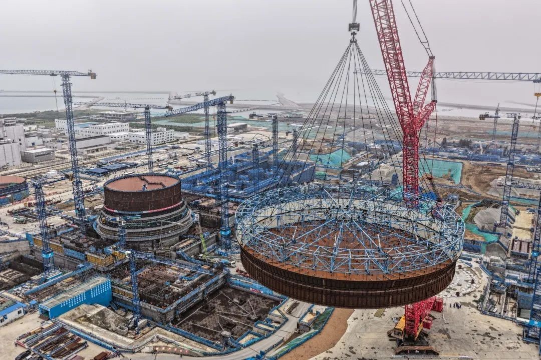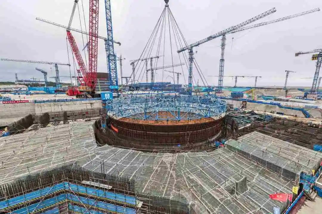 2025年7月1日12时58分,华能山东石岛湾核电站扩建一期工程2号机组反应堆厂房钢衬里模块一顺利吊装就位。