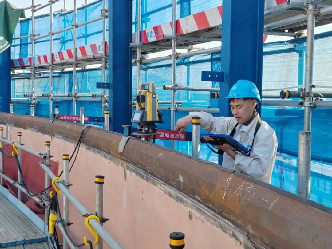 在复杂筏基区域,率先部署高精度测量机器人。其自动锁定与测量技术,实现了预埋件三维坐标的毫米级精准定位,确保与BIM模型高度吻合。