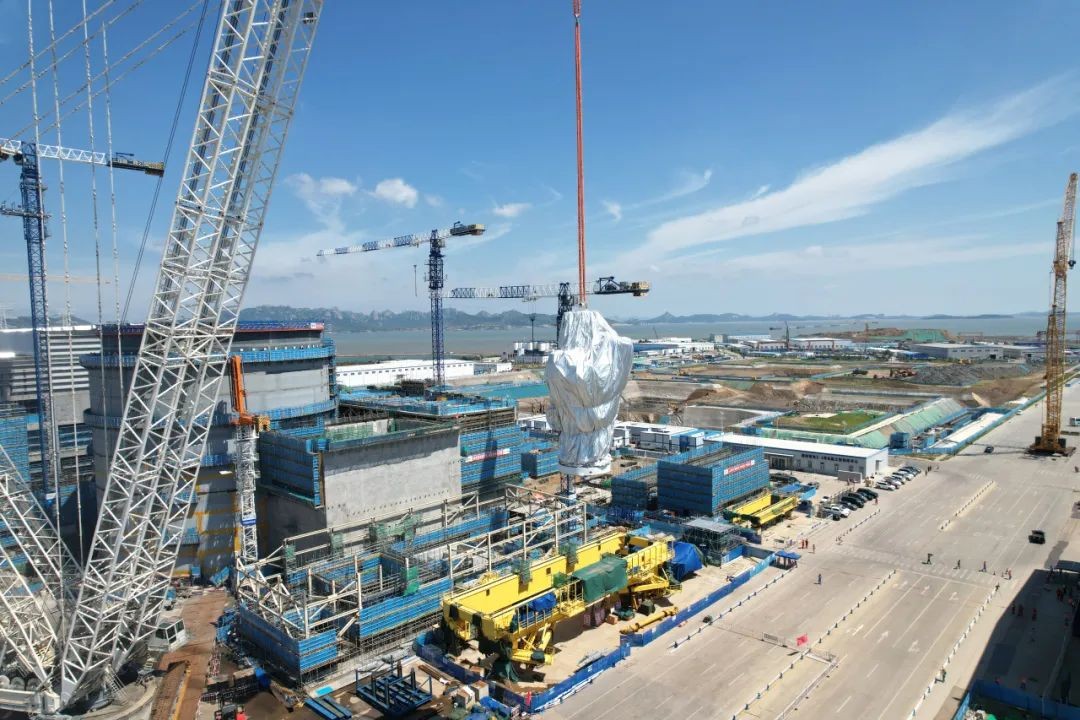 8月26日12时19分,由中核五公司承建的海阳核电4号机组压力容器一体化顶盖(IHP)顺利吊装就位,历时1小时52分钟,整个吊装过程平稳、有序、安全可控。