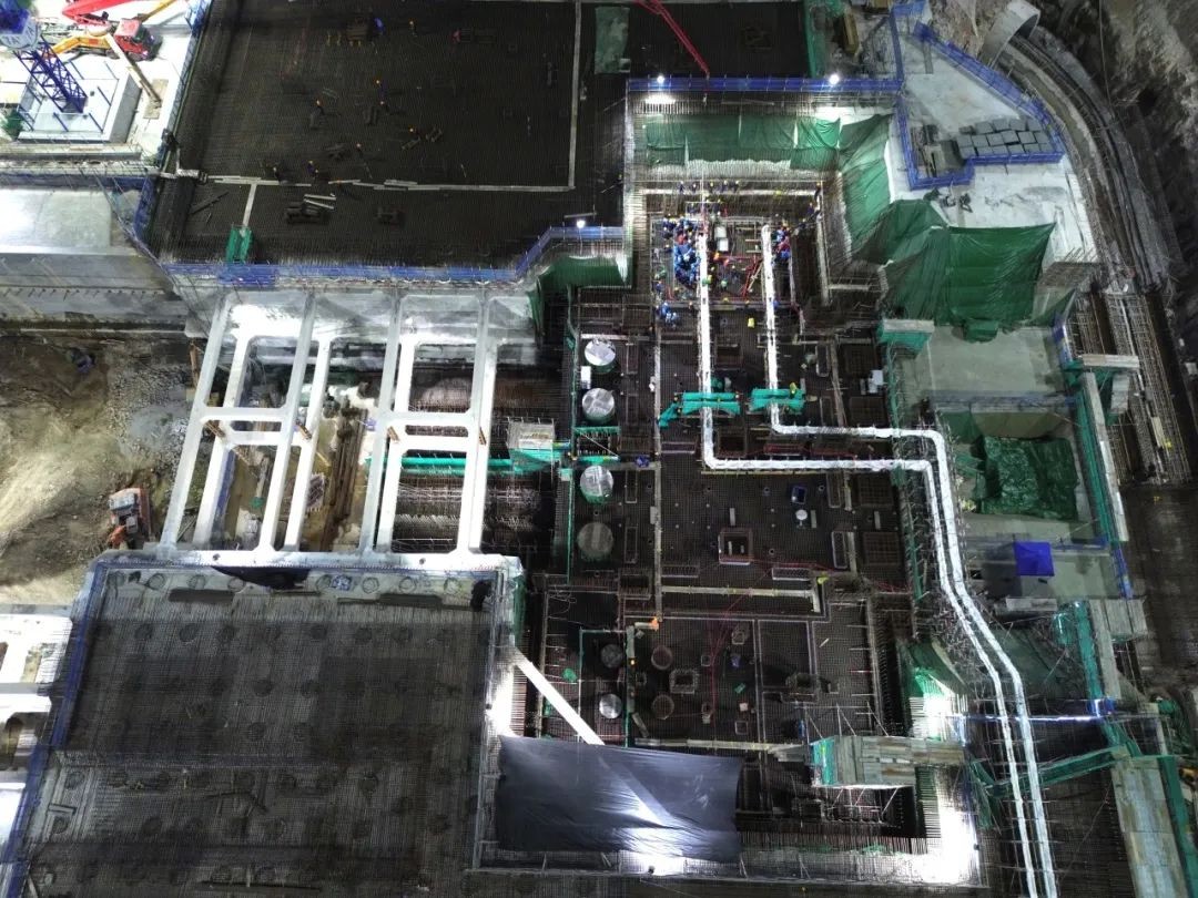 设计团队超前介入、驻场办公,对复杂地基处理方案进行多轮推演与动态优化;项目精准排布工程计划、明确关键节点,克服恶劣环境实现各工序无缝衔接;现场人员日夜奋战、多班轮替,在泥泞与潮汐中全力以赴推进施工。通过采用“微型钢管桩+锚杆”“灌注桩+内支撑”等组合工艺,并结合高压旋喷桩等技术对不良地质进行加固,确保了地基处理的可靠性。这场攻坚战的胜利,为本次常规岛FCD浇筑奠定了坚实基础。