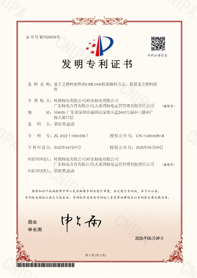 近日,大亚湾核电在知识产权领域迎来历史性突破——累计获得国家知识产权局授权发明专利突破1000件,这标志着大亚湾核电成为国内核电运营企业中首家发明专利授权迈入“千件级”的领军企业。