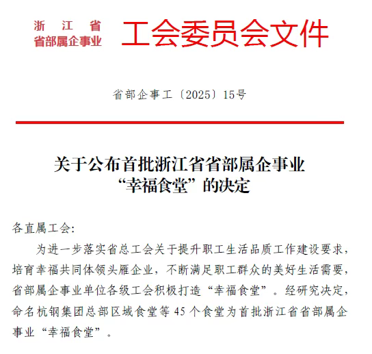 服务暖心 获评浙江省省部属企事业首批“幸福食堂”