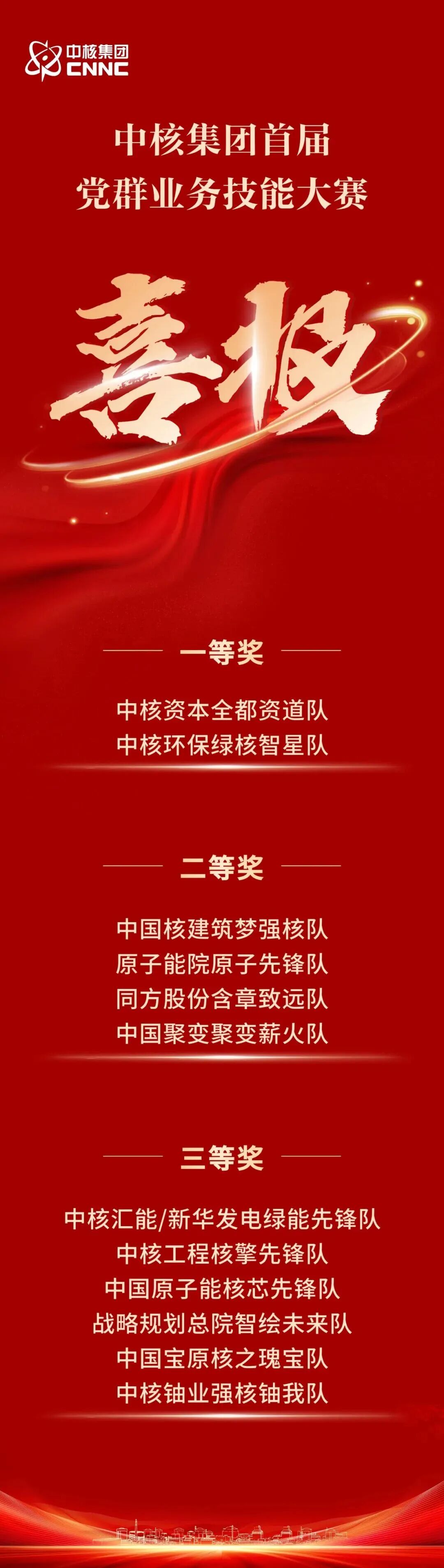 本次大赛,来自集团公司各二级单位的25支代表队、130余名党群业务骨干报名参加。比赛以“党建引领促发展,追求卓越开新局”为主题,共分为知识竞赛和主题宣讲两个环节。经过层层选拔,最终12支代表队脱颖而出,成功晋级决赛。比赛现场,选手们沉着应战、思路清晰,在知识比拼中尽显专业素养,在主题宣讲中诠释使命担当,呈现了一场兼具思想深度与专业高度的党群业务盛宴,充分印证了中核集团党务队伍是一支政治坚定、业务精湛、作风过硬的骨干力量。经过激烈角逐,决赛产生一等奖2个,二等奖4个,三等奖6个。