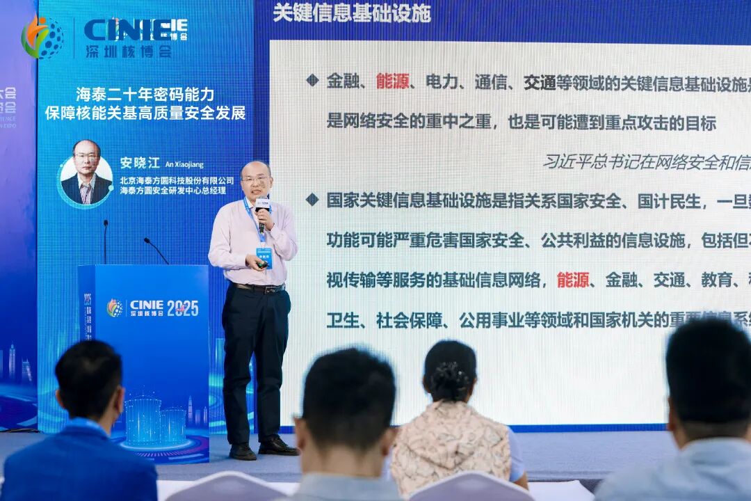 作为我国密码技术领域的领军企业,海泰方圆携全栈式密码、关基与安全解决方案重磅亮相,并受邀参与“核能首秀场”主题演讲,系统展示了公司在核能关键信息基础设施密码安全领域的综合能力与实践成果。
