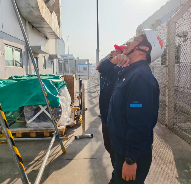 李连海重点关注了现场中高风险作业的现场管控。在5、6号机组联合泵房,他详细询问了厂房外围竖爬梯改造的具体进展,并仔细查看了垂直生命线的安装细节;在联合泵房的鼓网间以及变压器区域,李连海认真检查高风险作业脚手架的搭建情况,并从提升作业安全性的角度出发,与现场工作人员探讨了脚手架提升改造的可行性,进一步降低操作风险。
