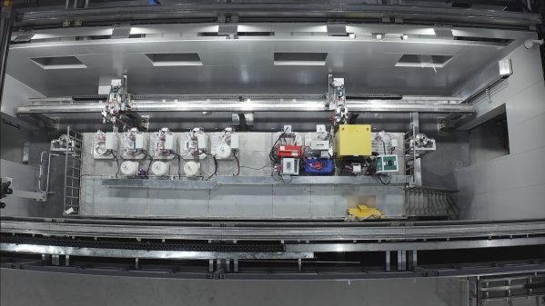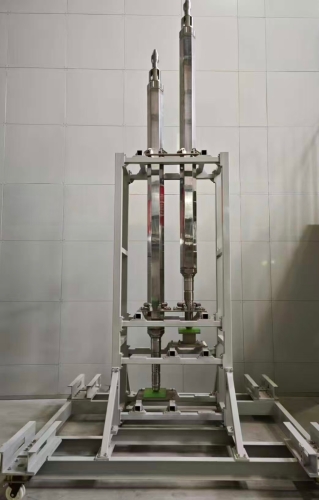 在单棒制造技术方面,考虑到快堆再生燃料释热性强的特点,项目团队创新研制出立式单棒制造装置,采用多自由度工艺实现了钠结合工艺操作,并配套涡流检测方法,实现了单棒钠结合质量的自动化检测,进一步保障了金属燃料的能量转化效率。