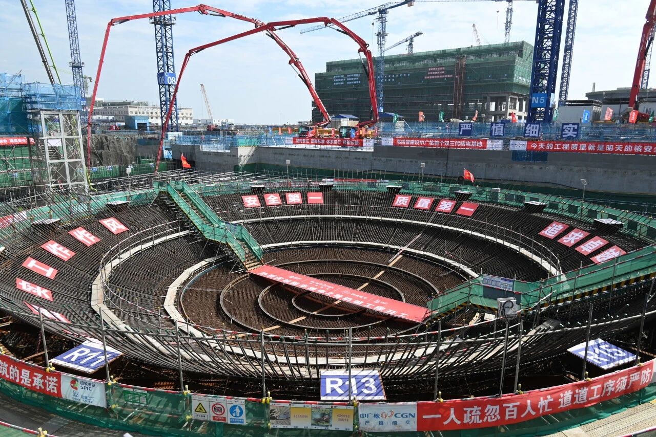 2号核岛基础长约89.1米、最宽处49.1米,预计浇筑混凝土总量6635.5立方米,为难度较高的大体积混凝土浇筑。作为项目总承包方,上海核工院基于“向技术要一切”的创新理念,在前序项目和1号机组的基础上持续开展施工优化:首次实现核岛底板周边全范围“逆作法”施工,降低外墙钢筋密集区振捣难度;实现插筋全范围落底,化解浇筑阶段的偏位风险;对梯笼及脚手架通道布置进行优化,能够有效提升浇筑效能,保障浇筑质量。