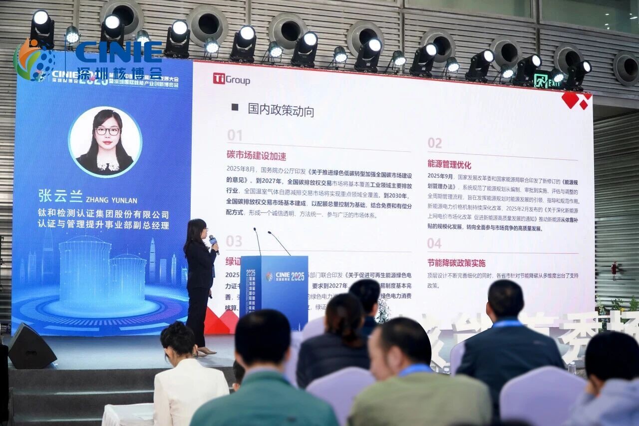 钛和集团认证与管理提升事业部副总经理张云兰受邀于主旨论坛发表《绿色低碳评价认证助力核电可持续发展》主题演讲,以核电的应用场景及“双碳”目标为切入点,深入剖析绿色低碳评价认证对于核电产业可持续发展的意义。随后,她通过钛和集团服务上海电气、德力西电气、中国中车、吉利汽车等项目案例,向与会专家及行业代表详细介绍了钛和集团认证、校准、检测一体化服务在助力中国核电高质量发展中的生动实践。