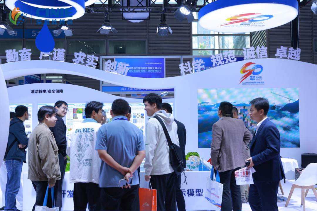 展览期间,政府部门、科研院所、行业协会和核能产业链企业领导及各界同仁来南京水利科学研究院展厅参观指导,听取参展成果介绍,并与技术人员进行现场交流。