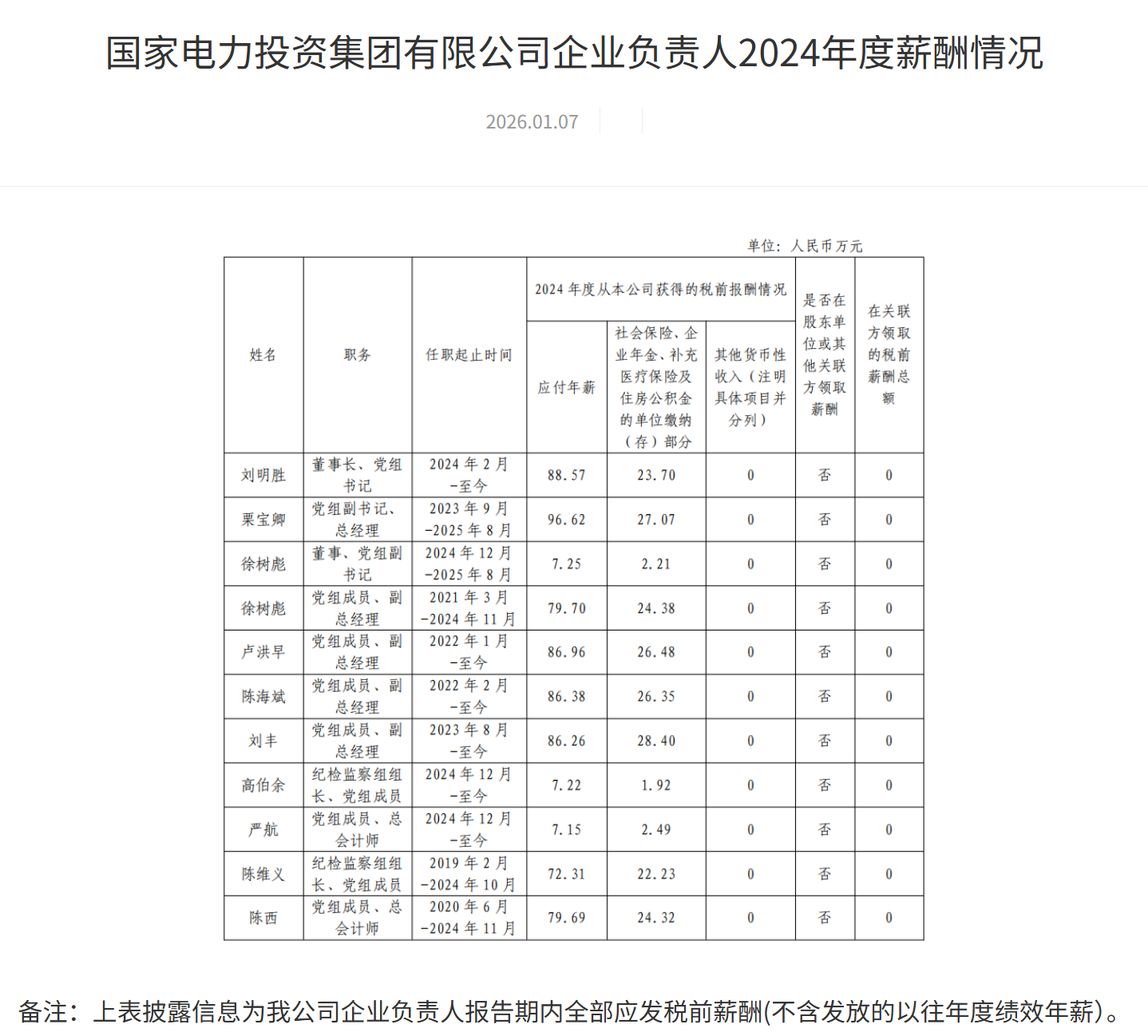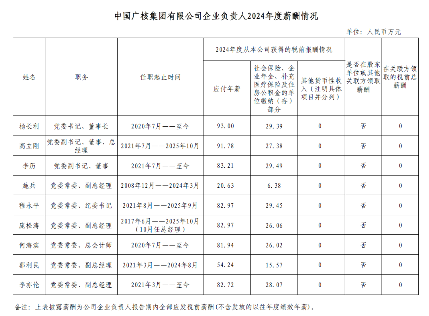 近日,中国华能集团,中国大唐集团,国家电力投资集团,中国广核集团等多家能源央企披露2024年度企业负责人薪酬情况。