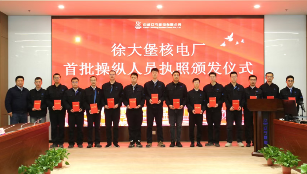 1月14日,辽宁核电举行首批操纵人员执照颁发仪式。公司党委书记、董事长陈劲,总经理、党委副书记张雄,副总经理李祝三出席仪式,生产准备总经理张迅主持仪式。新持照操纵人员、预备操纵员代表及家属代表共同参加活动。