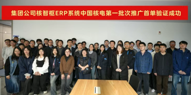 上线仪式由集团公司科技质量与数字化部、数字化中心、ERP项目部以及中国核电相关领导出席见证。随着最后一家试点单位完成最终审批节点,现场响起热烈的掌声,中国核电“核智枢ERP系统”首批4家单位首单验证全部通过,数据流转精准、业务流程顺畅,系统正式投入运行。