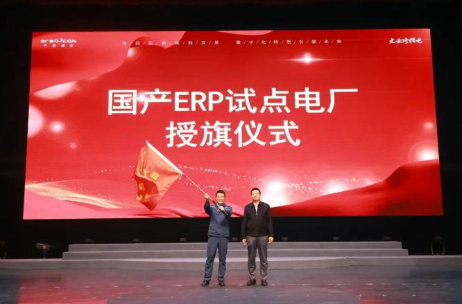 活动中,集团科技数字化部总经理周国丰代表集团向大亚湾核电进行国产ERP项目授旗,标志着大亚湾核电正式成为集团国产ERP系统研发的首家试点单位,肩负起先行先试、探索路径的重要使命。