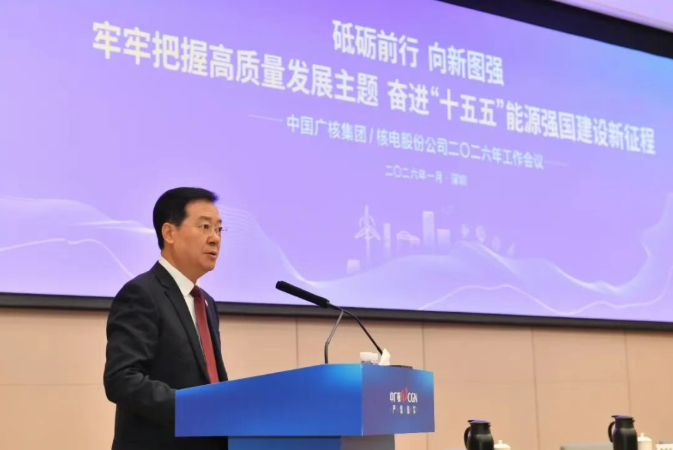 1月22日,中国广核集团暨中国广核电力股份有限公司2026年工作会议在深圳中广核大厦召开。中国广核集团有限公司党委书记、董事长杨长利在大会上作题为《砥砺前行,向新图强,牢牢把握高质量发展主题,奋进“十五五”能源强国建设新征程》的年度工作报告。集团公司党委副书记、总经理庞松涛主持会议。