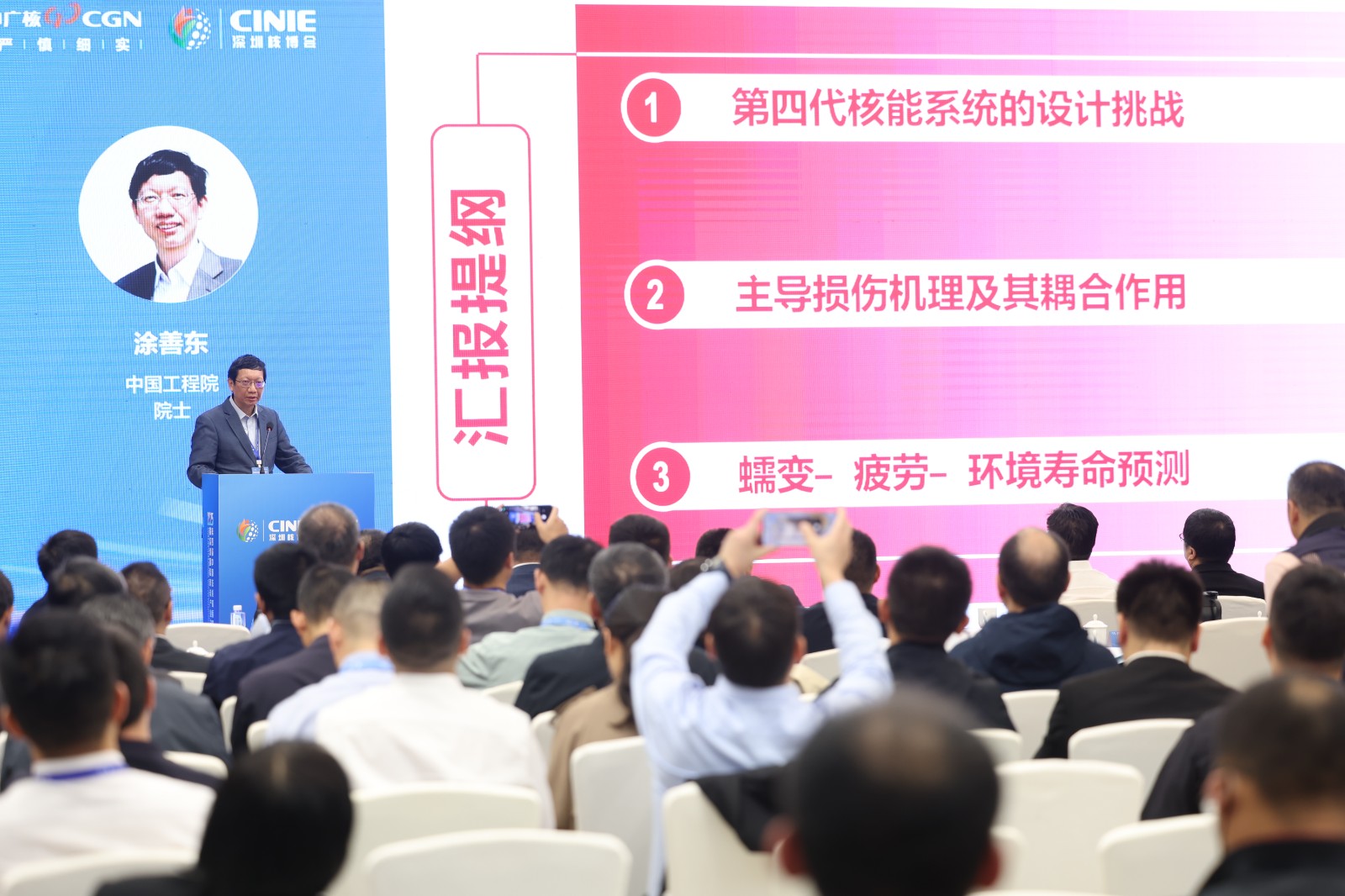 2025年11月13日,中国工程院院士涂善东在深圳核博会核电先进装备与产业链论坛发表《面向复杂损伤机制的四代核电设备寿命评价方法》主旨报告。