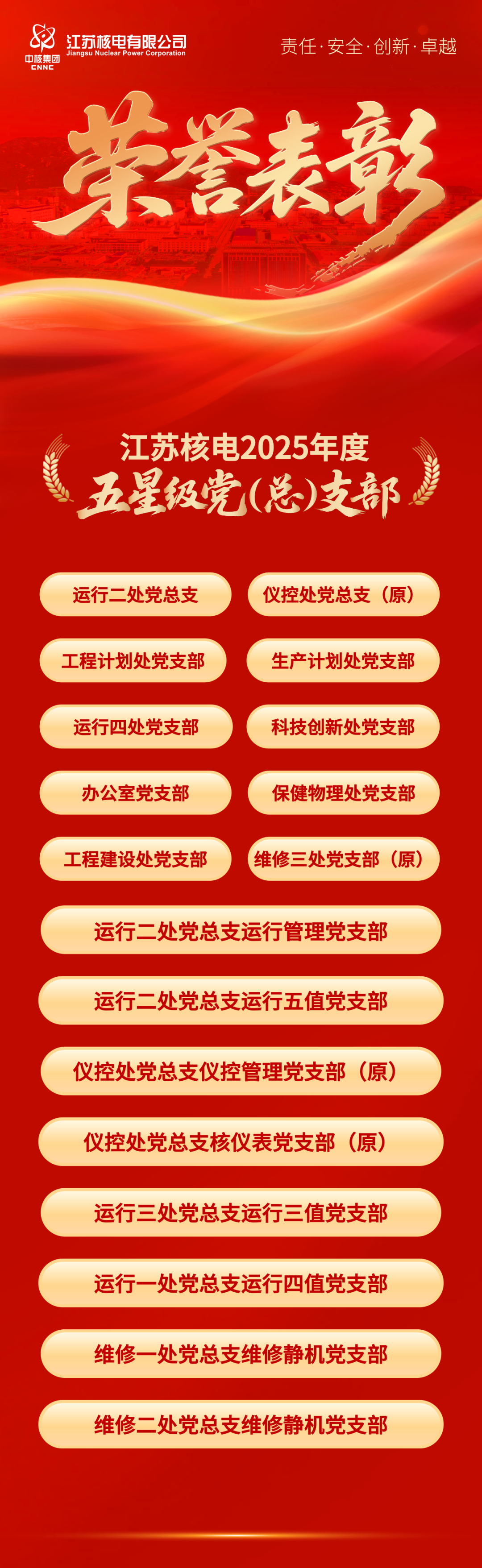 2025年是我国核工业创建70周年,也是“十四五”收官之年。江苏核电党委坚定拥护“两个确立”、坚决做到“两个维护”,在集团公司党组和中国核电党委的正确领导下,充分发挥“把方向、管大局、保落实”领导作用,坚持稳中求进工作总基调,坚持以高质量党建引领保障高质量发展,高质量完成“十四五”主要目标任务,“两个一流”核电基地建设迈出坚实步伐。