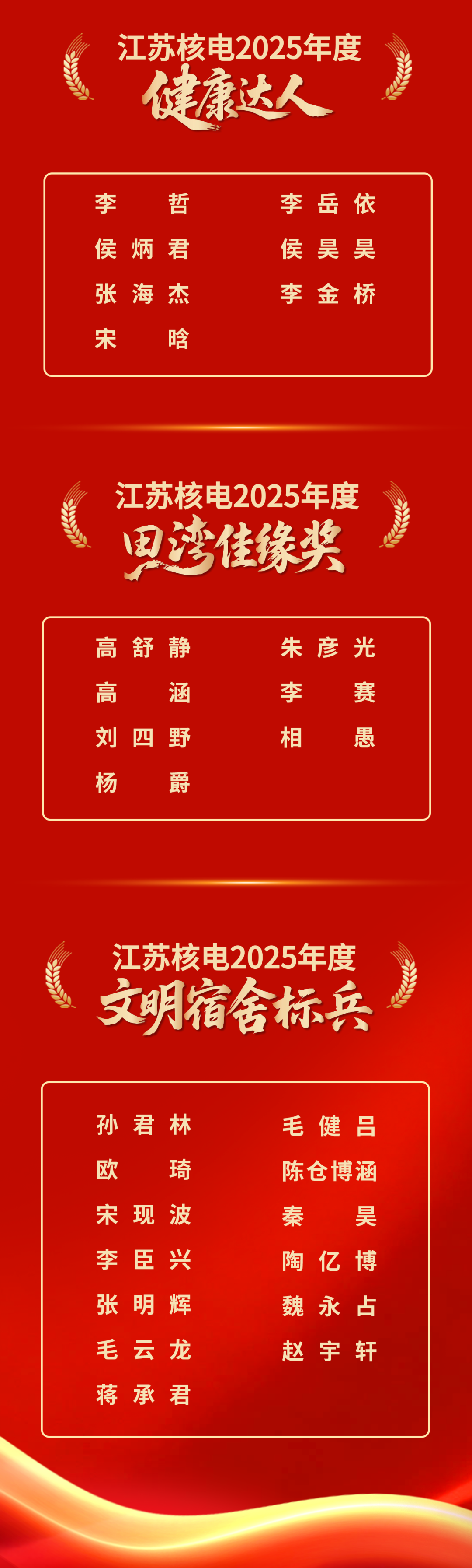 会议表彰了公司2025年度五星级党(总)支部、党建融入中心十大品牌案例、党委巡察先进个人,以及在“体重管理年”“田湾佳缘”“文明宿舍建设”等活动中涌现出来的优秀代表。