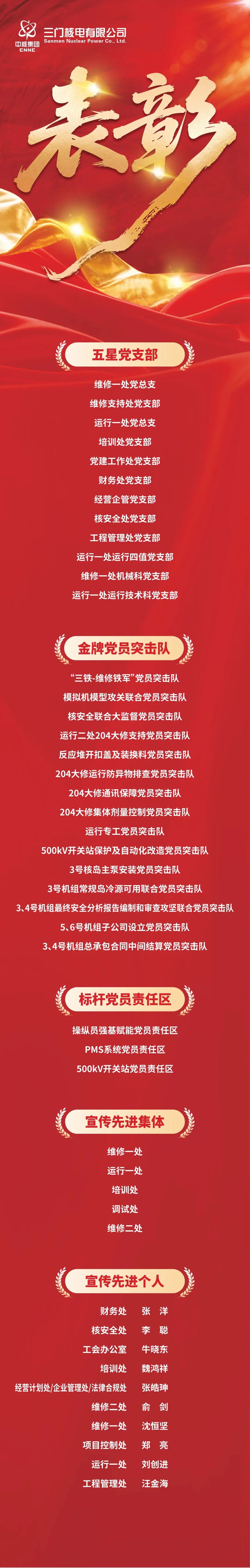 2025年,是中国核工业创建70周年,是三门核电成立20周年,也是“十四五”收官之年,在集团公司党组和中国核电党委的坚强领导下,三门核电党委深入学习贯彻习近平新时代中国特色社会主义思想和党的二十大和二十届历次全会精神,扎实开展深入贯彻中央八项规定精神学习教育,牢记集团公司、中国核电赋予公司的使命任务,深入推进公司党的建设和经营治理深度融合,持续深化党建融入中心的载体建设和党建品牌创建,以高质量党建引领高质量发展,为公司安全生产、项目建设、经营管理、改革发展提供了坚强思想基础和政治保障。