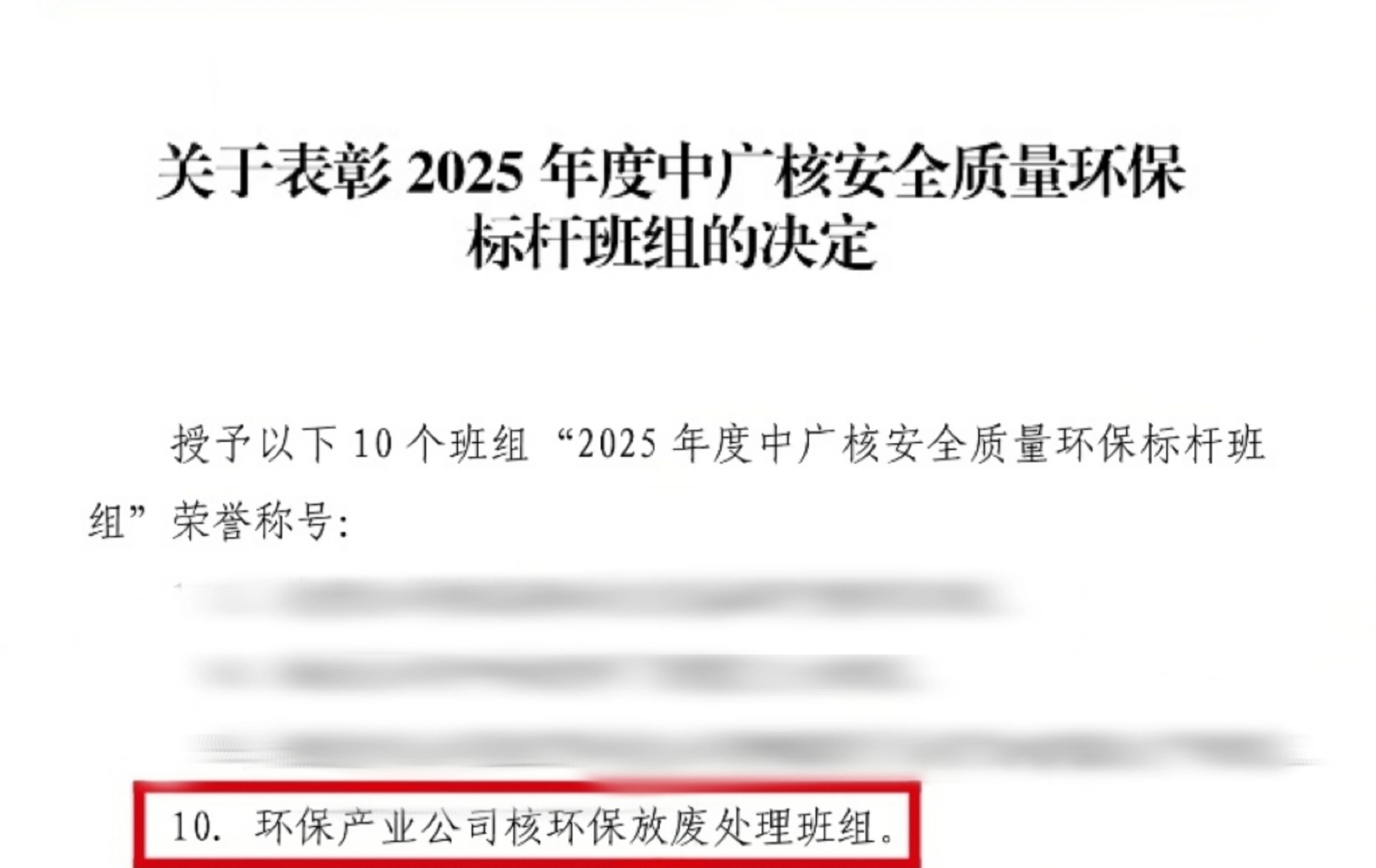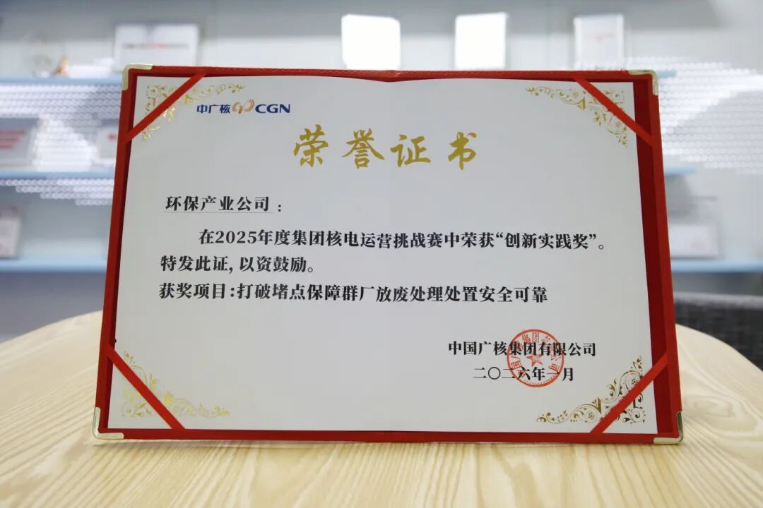 “锚定以核环保为特色科技型环保产业主体新功能定位,聚焦主责主业重塑业务体系,破解发展难题,改革成效持续显现”荣获中广核2025年度单项奖